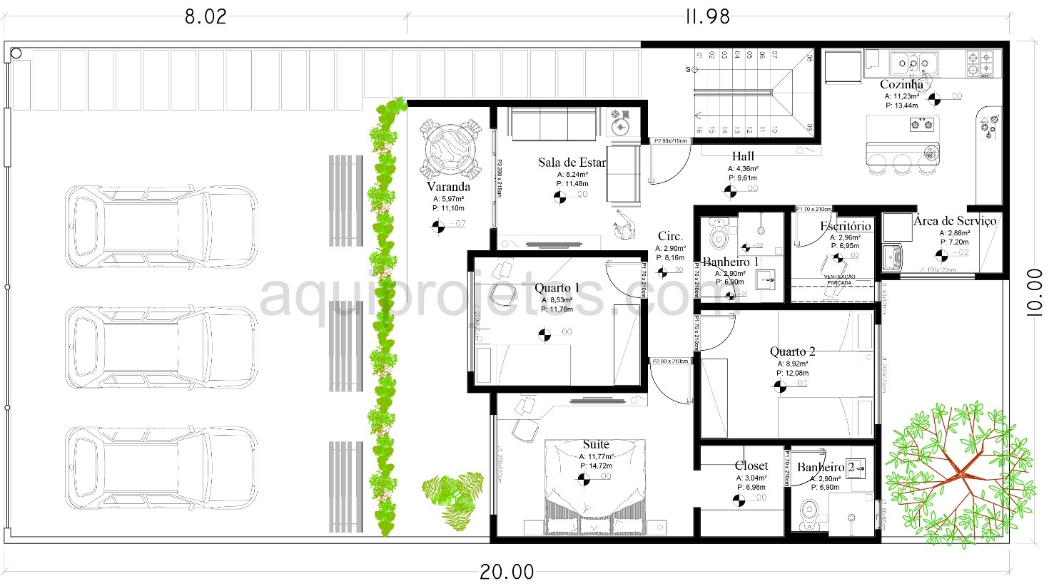 - Esquadrias dos dormitórios em alumínio;